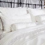 Bordado exclusivo em risco barroco, elegante, atemporal e ainda em alto relevo. Pregas e entremeio ajour em toda extensão das peças. Linha completa em bordado branco e caqui. Belíssimo, um clássico Blue Gardenia!