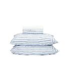 O jogo cama contém 3 peças confeccionadas em algodão 230 fios egípcios. A colcha de modelo casal possui superfície lisa, formato retangular, estampa de listras em cor contrastante, aplicação de entremeio e acabamento pespontado. Os porta travesseiros possuem formato retangular, estampa de listras em cor contrastante e acabamento pespontado.