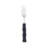 O garfo de sobremesa com cabo em bambu natural na cor preto, fica perfeito na combinação de sua mesa.