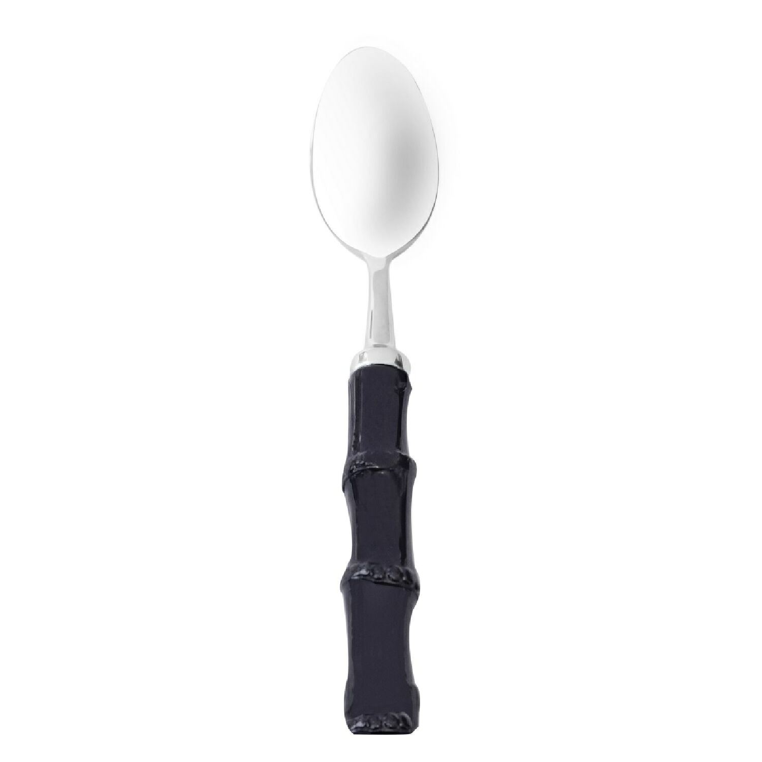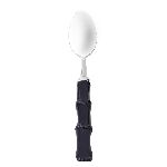 A colher de jantar com cabo em bambu natural na cor preta, fica perfeita na combinação de sua mesa.