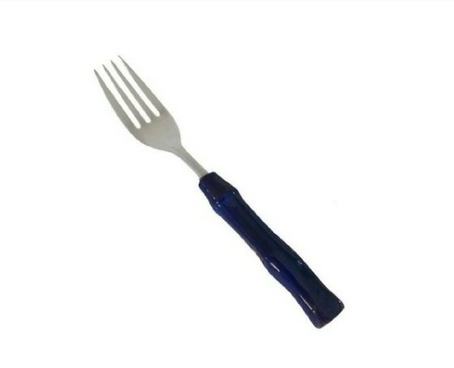 O garfo de jantar com cabo em bambu natural na cor azul, fica perfeito na combinação de sua mesa.
