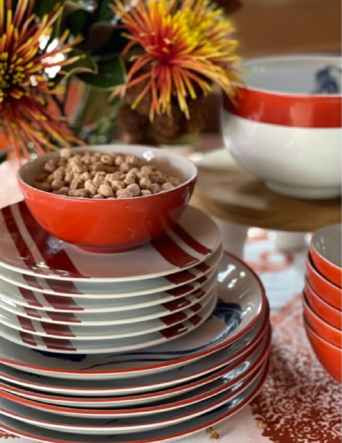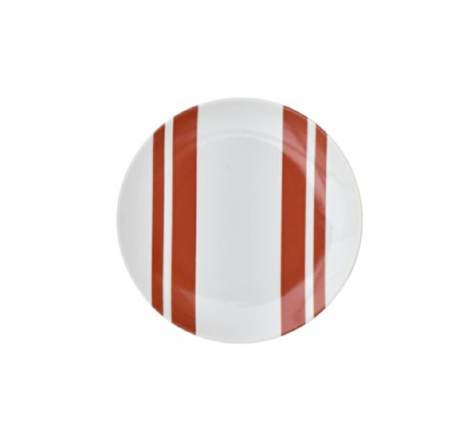 A linha Entreposto Taste foi criada para deixar os cafés, almoços e jantares ainda mais especiais. O prato para sobremesa em porcelana branca ganha personalidade com as listas na cor rusty.