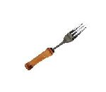 O garfinho de aperitivo é em aço inox, com cabo bambu natural, fica perfeito na combinação de sua mesa.