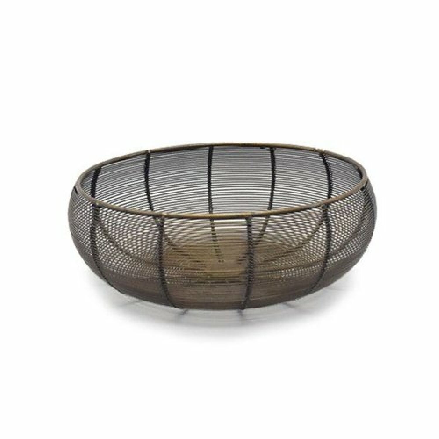 A fruteira em ferro vazado redonda possui um design diferenciado em aramado de metal bronze, levando todo charme e sofisticação que faltava no seu ambiente.