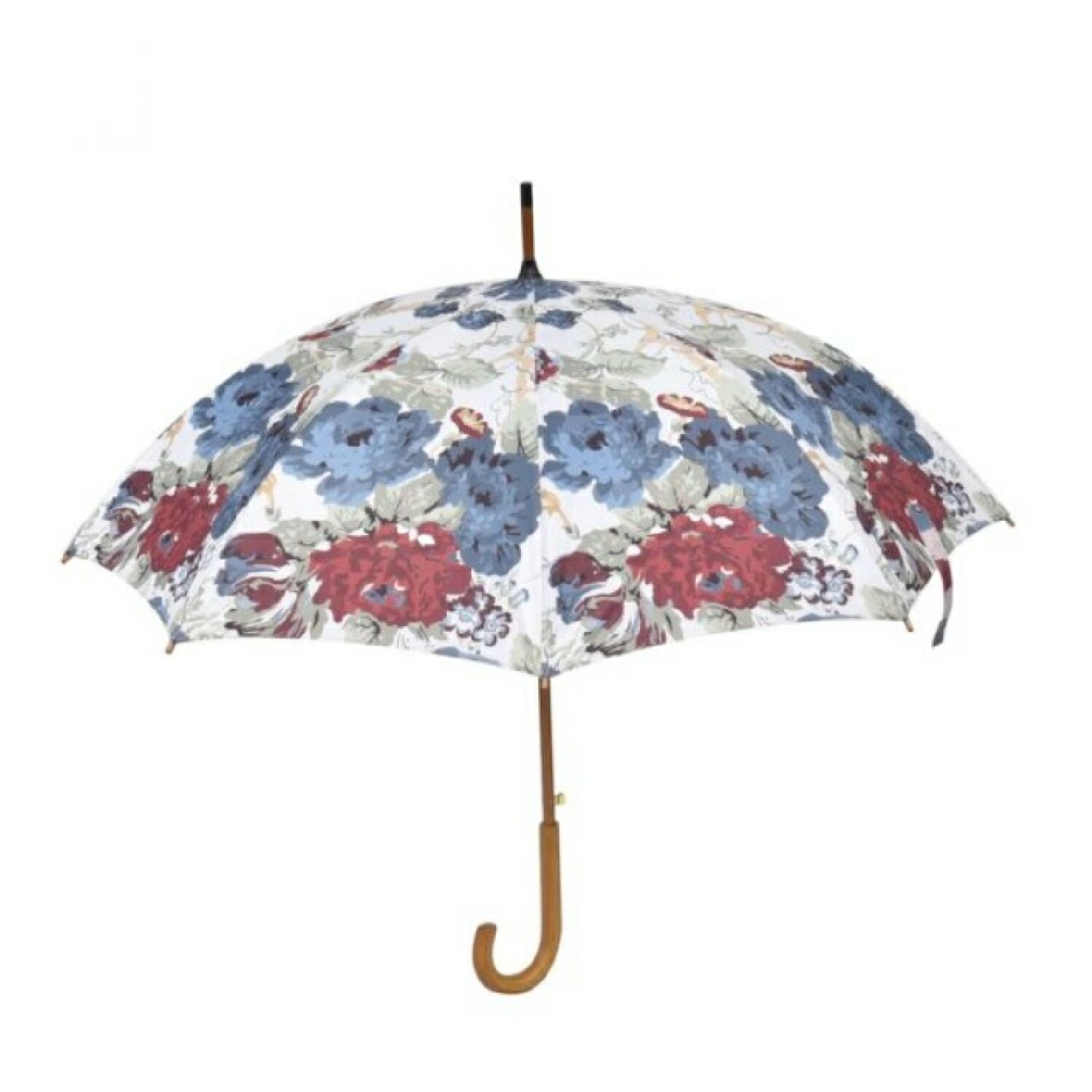 O Guarda-chuva Sintra Peônia torna os dias de chuva mais alegres. Ele possui armação em madeira e aço e tecido de nylon, com estampa exclusiva Entreposto.