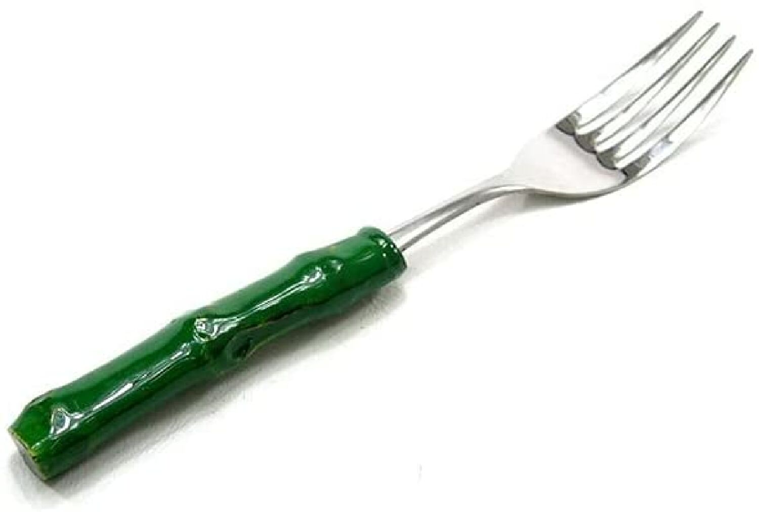 O garfo de mesa com cabo em bambu natural na cor verde, fica perfeito na combinação de sua mesa.
