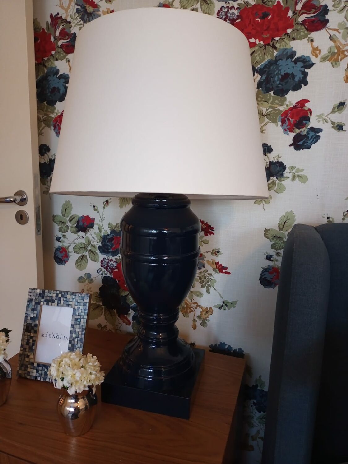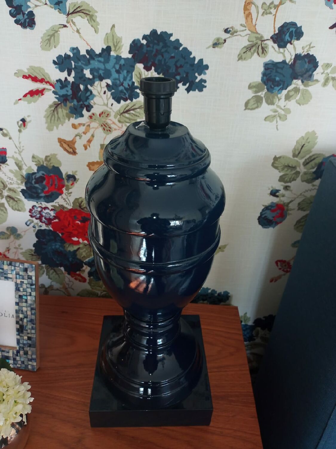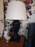 A base de abajur anfora, na cor azul marinho, é uma ótima opção para enfeitar móveis e, ainda, incrementar a iluminação da casa.